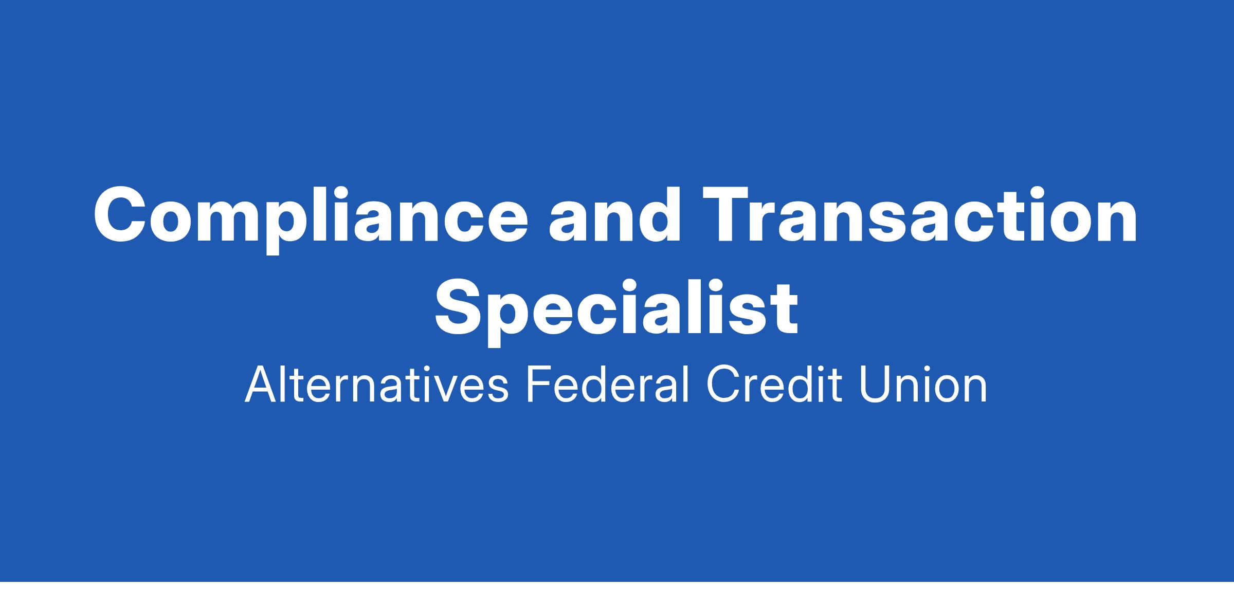 Alternatives FCU is seeking a Compliance and Transaction Specialist to join our Finance Team. Alternatives is a Community Development Financial Institution (CDFI) credit union serving Tompkins and surrounding counties, and is proud to find solutions for those left behind by the mainstream financial institutions. CDFIs share a common goal of expanding economic opportunity in low-income communities by providing access to fair financial products and services for local residents and businesses.