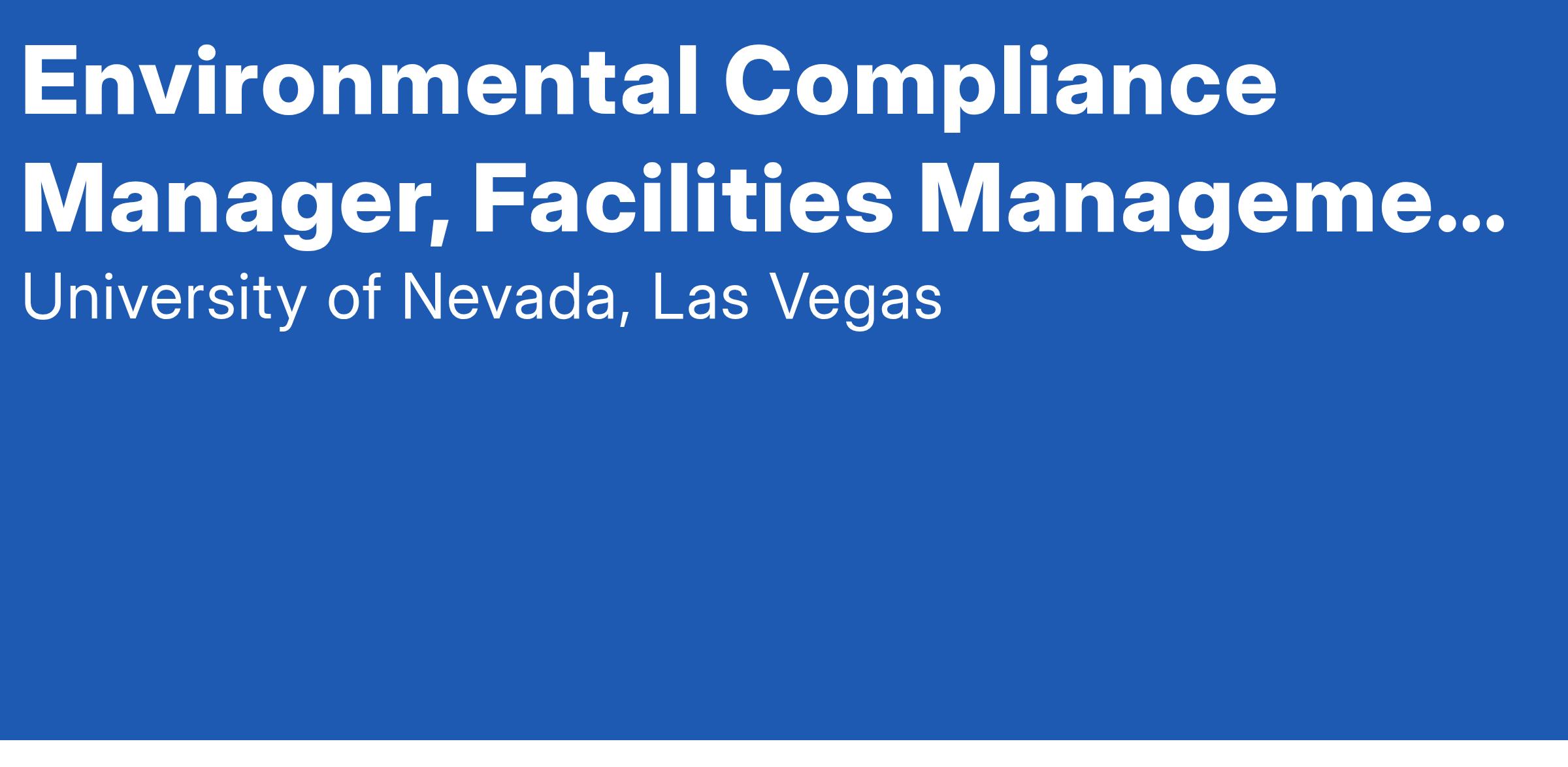 The University of Nevada, Las Vegas invites applications for Environmental Compliance Manager, Facilities Management [R0147208]