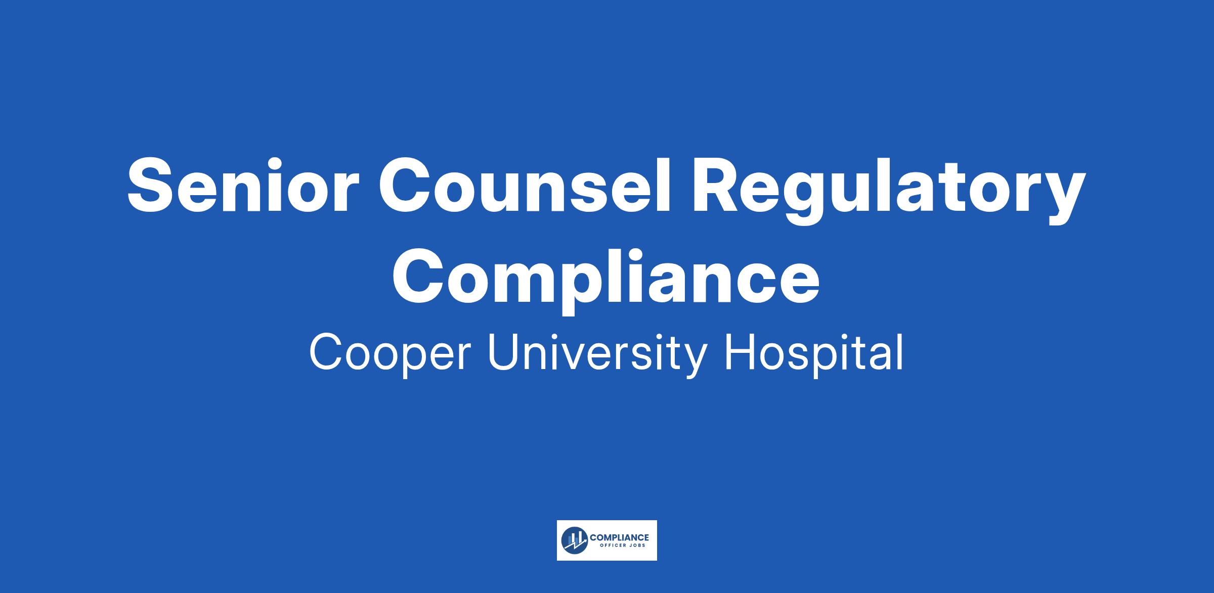 Senior Counsel, Regulatory Compliance, is a motivated individual who believes in Cooper’s mission to serve, to heal, and to educate to improve the lives of Cooper patients and the communities it serves.