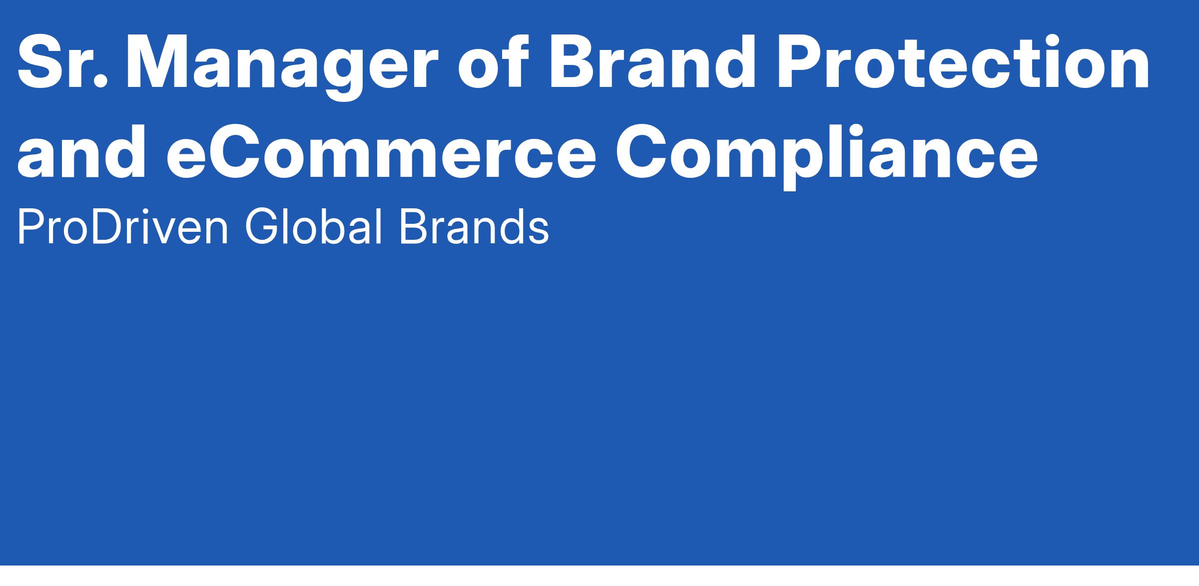 We are seeking an experienced and visionary Sr. Manager of Brand Protection and eCommerce Compliance to lead our strategic efforts to protect ProDriven brand integrity across digital channels. This leader will be responsible for driving thought leadership and disciplined execution in areas of Internet Reseller Authorization, MAP Pricing Policies, and third-party (3P) platform seller governance—particularly on Amazon. The ideal candidate has a proven track record of managing complex compliance ecosystems, aligning cross-functional teams, managing digital seller networks and serving as a brand guardian both internally and externally.